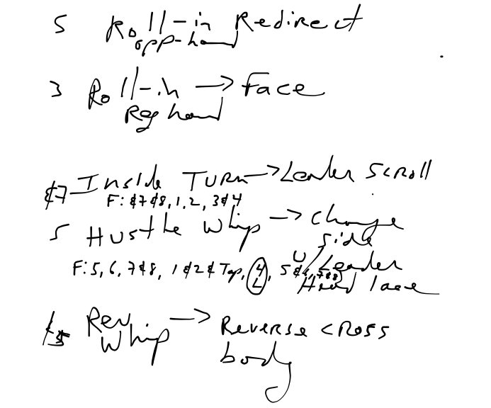 I have seen many students who were willing to write down the sequence or choreography of the day...if only they knew how. This is your brain's way of saying that it doesn't have a neurological pathway to arrive at the destination. That's probably the problem with your dancing. If your brain can't process the information in multiple ways, then you probably don't fully understand the information. Here are some beginner to advanced examples of how to write a beginner West Coast Swing and Hustle class.
